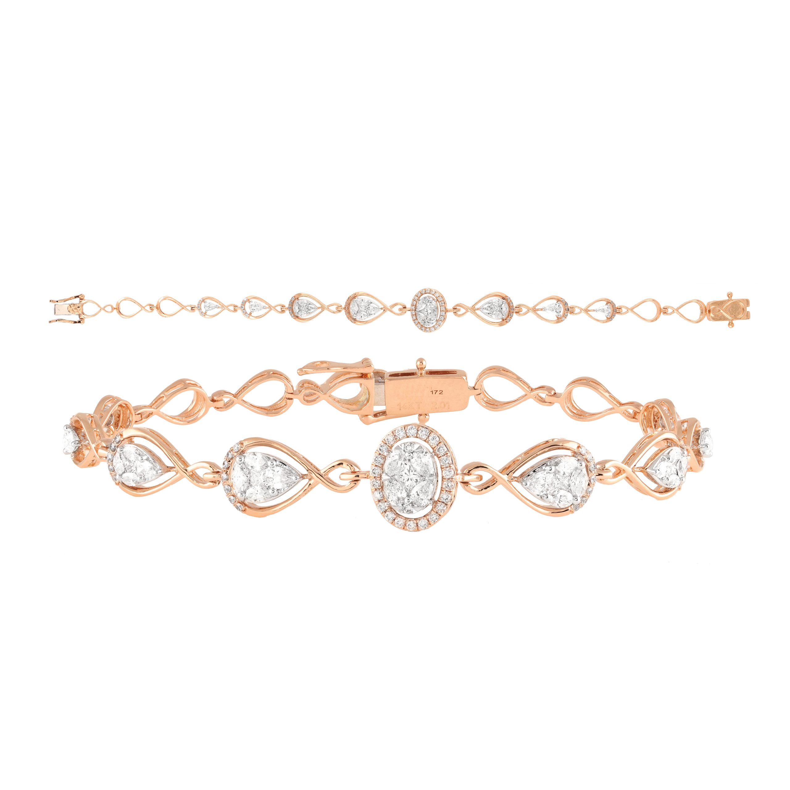 SKU NO – BR-01199 CATEGORY – BRACELET SUB CATEGORY – BRACELET GENDER – Female COLLECTION – DESIRE GOLD KT – G14KT GOLD COLOR – P PRODUCT SIZE – GROSS WEIGHT – 9.704 GOLD WEIGHT – 9.314 DIAMOND WEIGHT – 1.95 QUANTITY – 1
