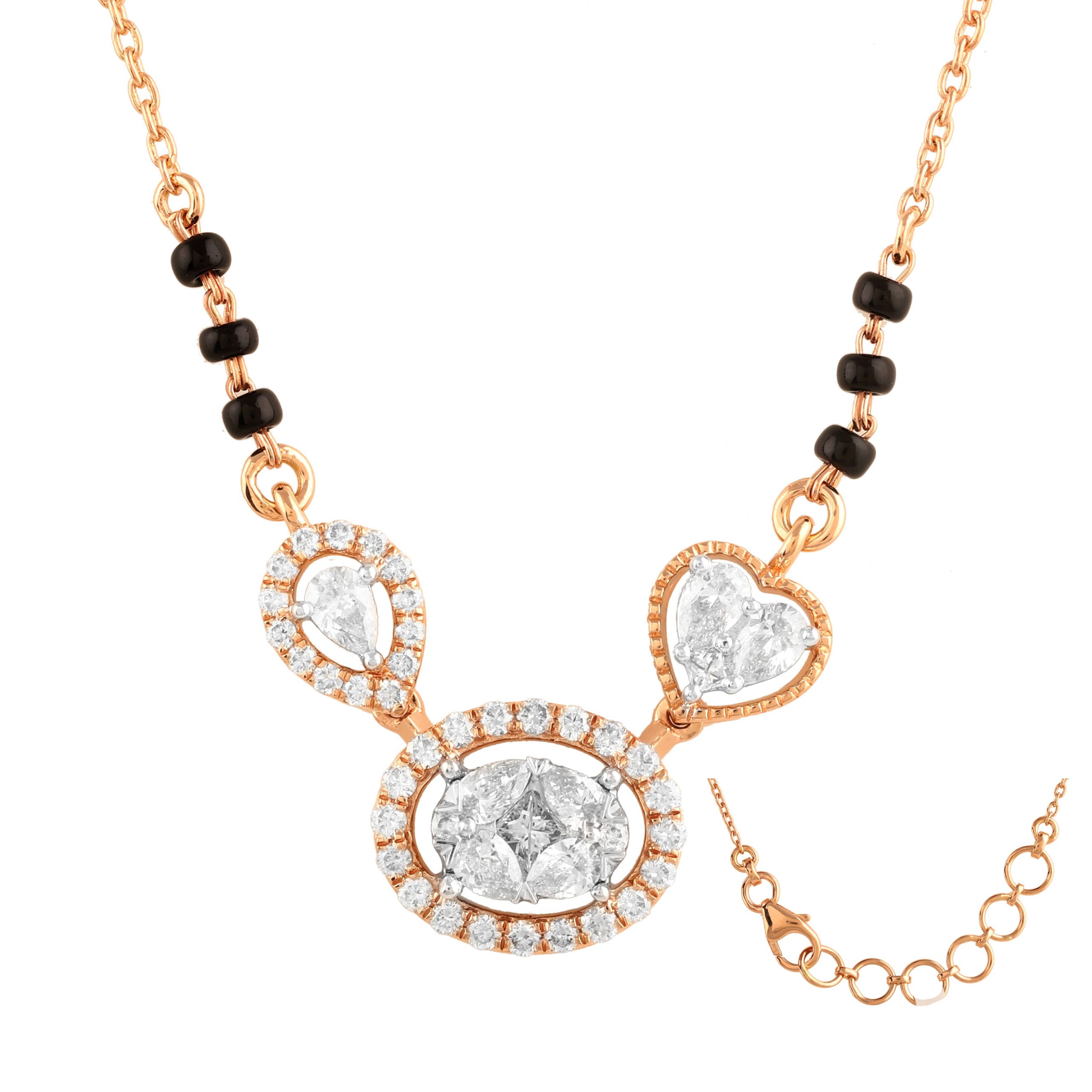 SKU NO – MP-00405 CATEGORY – MANGALSUTRA SUB CATEGORY – MANGALSUTRA GENDER – Female COLLECTION – DESIRE GOLD KT – G14KT GOLD COLOR – P PRODUCT SIZE – GROSS WEIGHT – 4.500 GOLD WEIGHT – 4.293 DIAMOND WEIGHT – 0.760 QUANTITY – 1