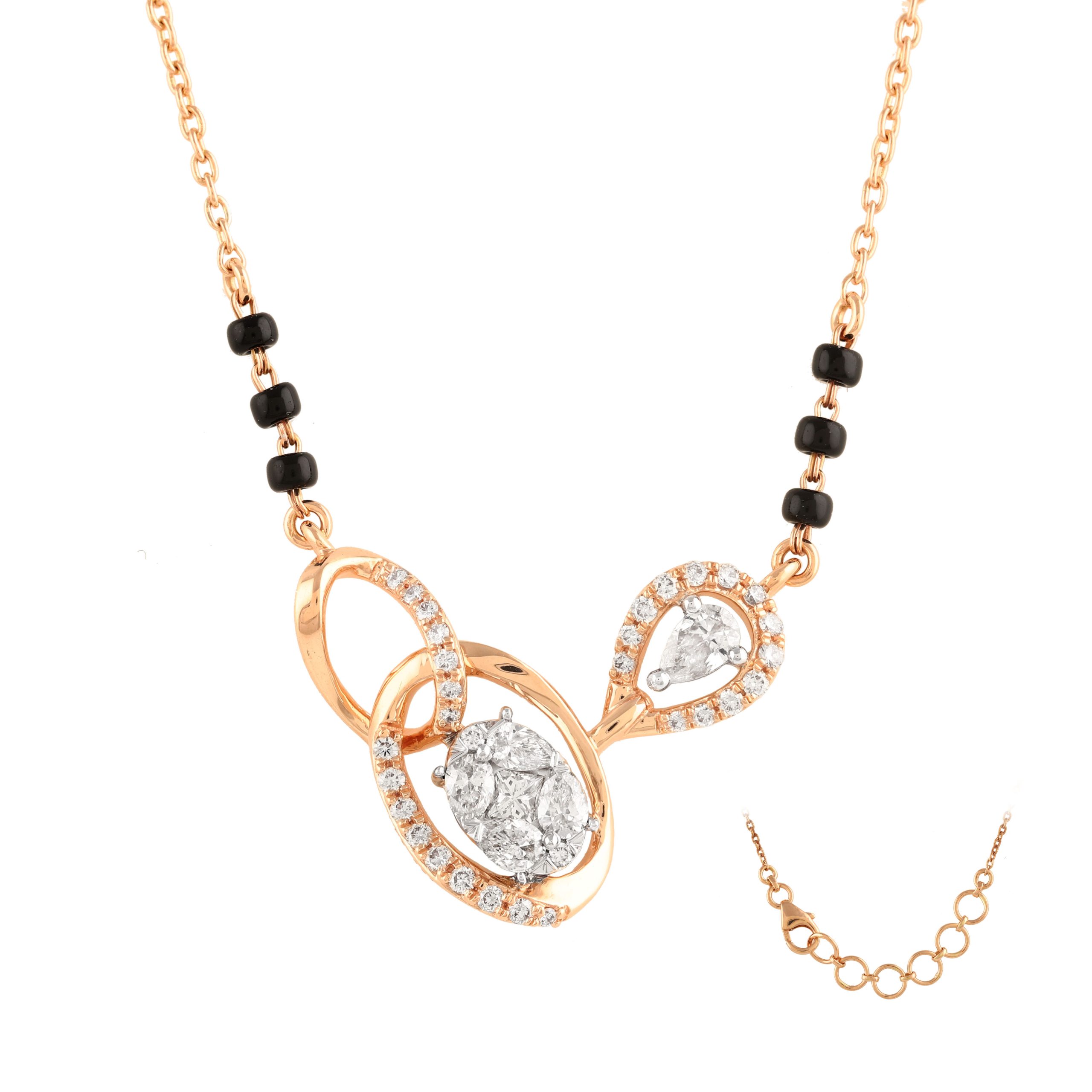 SKU NO – MP-00418 CATEGORY – MANGALSUTRA SUB CATEGORY – MANGALSUTRA GENDER – Female COLLECTION – DESIRE GOLD KT – G14KT GOLD COLOR – P PRODUCT SIZE – GROSS WEIGHT – 4.482 GOLD WEIGHT – 4.309 DIAMOND WEIGHT – 0.590 QUANTITY – 1