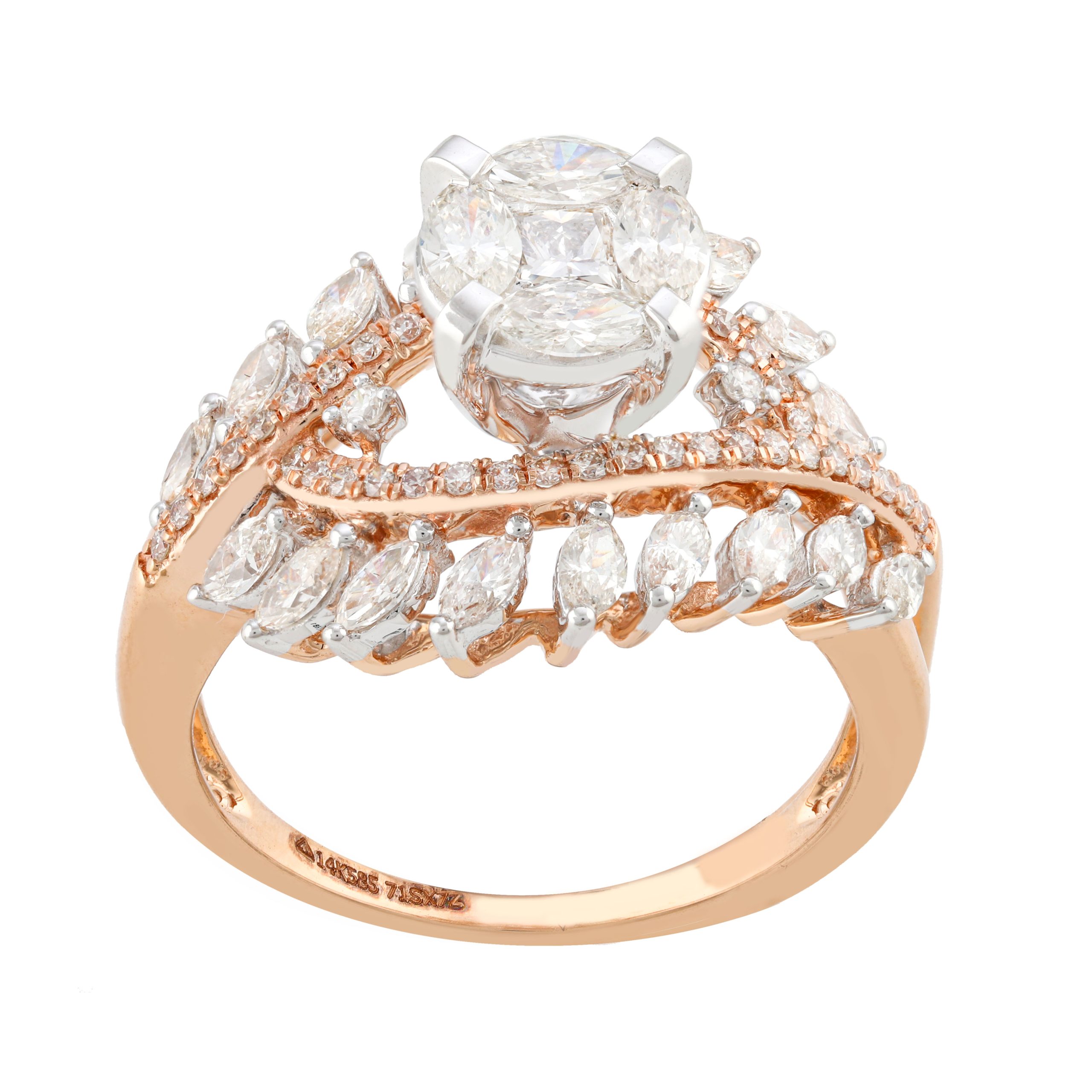 SKU NO – RP-12468 CATEGORY – RING SUB CATEGORY – RING GENDER – Female COLLECTION – DESIRE GOLD KT – G14KT GOLD COLOR – P PRODUCT SIZE – GROSS WEIGHT – 4.596 GOLD WEIGHT – 4.374 DIAMOND WEIGHT – 1.110 QUANTITY – 1