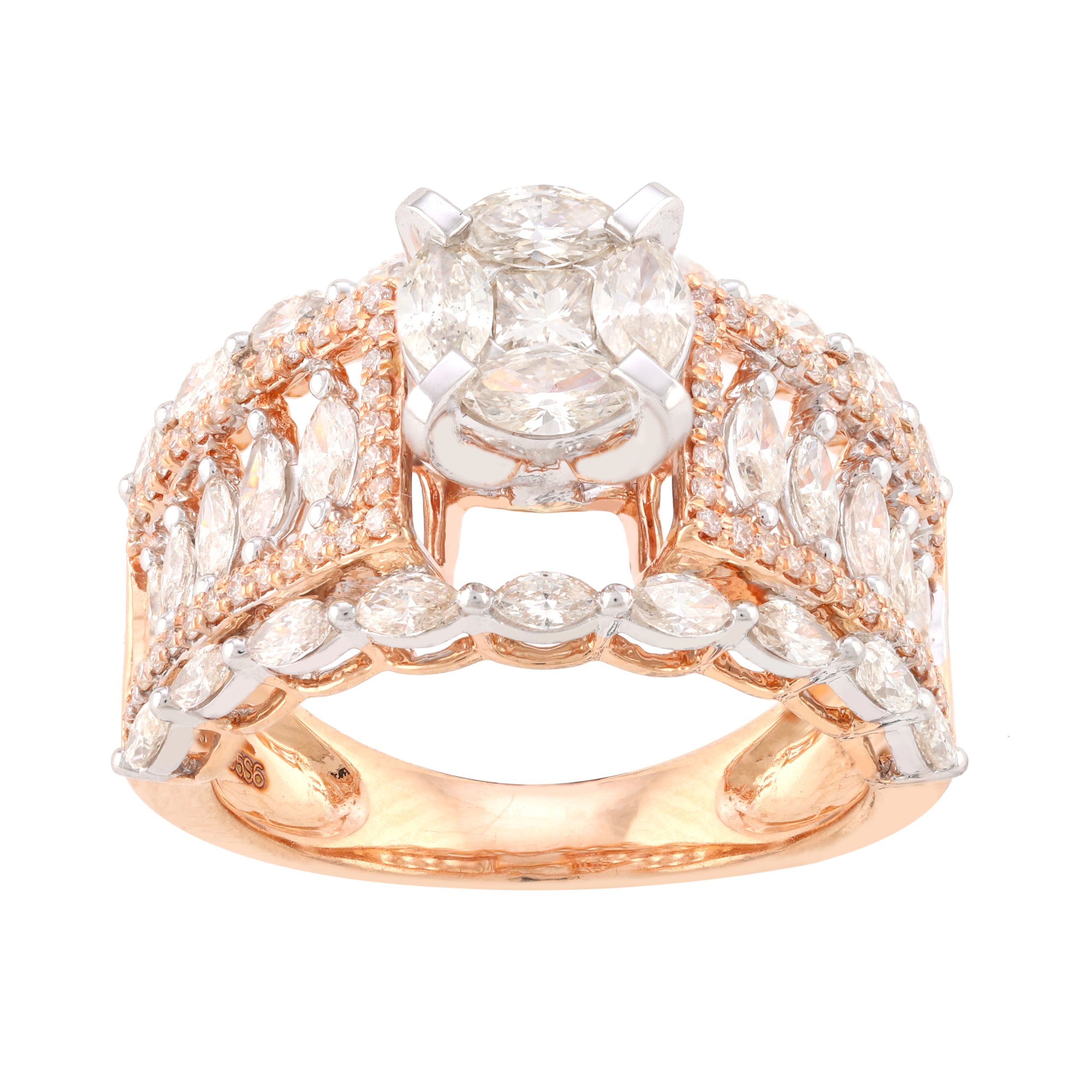 SKU NO – RP-12469H117 CATEGORY – RING SUB CATEGORY – RING GENDER – Female COLLECTION – DESIRE GOLD KT – G14KT GOLD COLOR – P PRODUCT SIZE – GROSS WEIGHT – 5.229 GOLD WEIGHT – 4.883 DIAMOND WEIGHT – 1.730 QUANTITY – 1