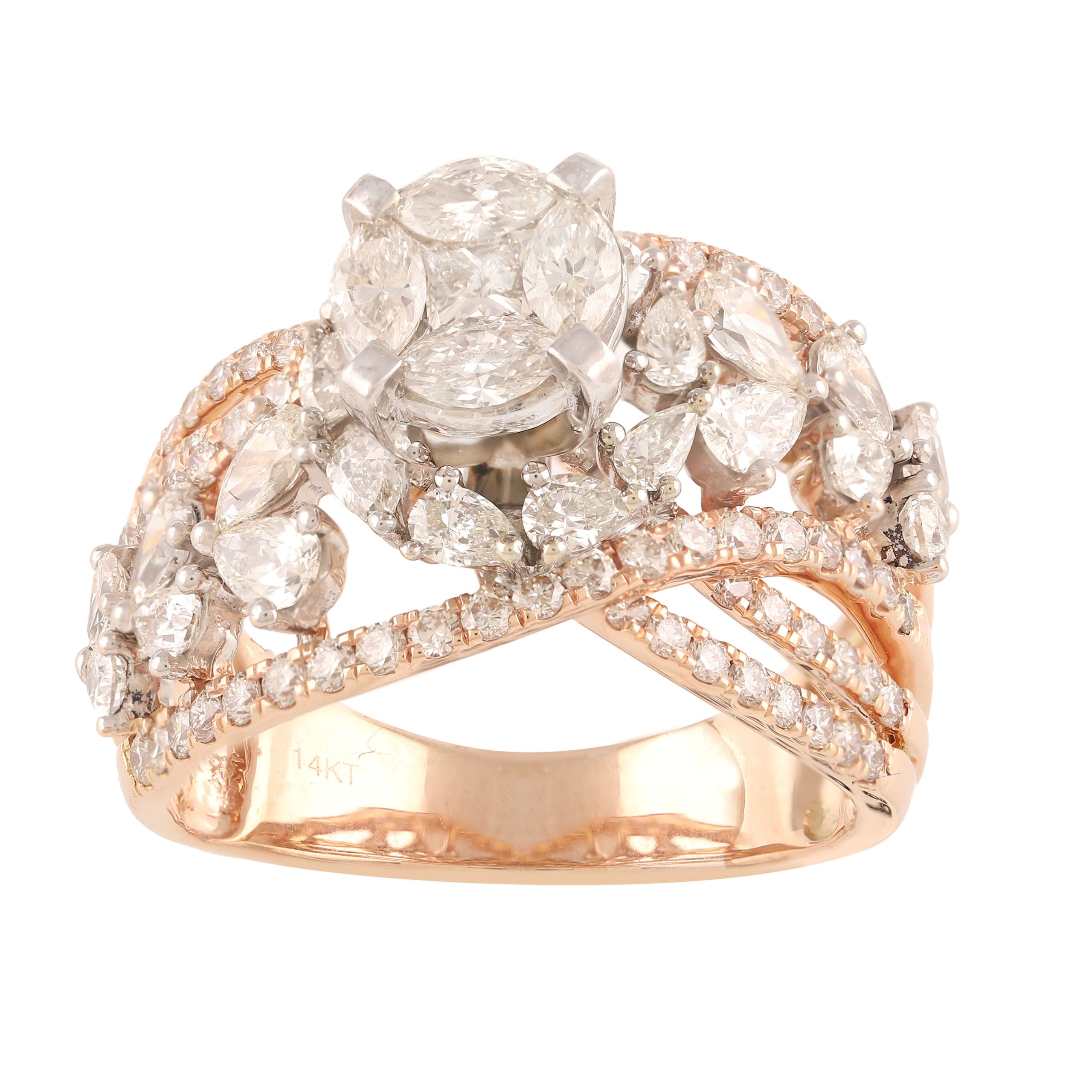 SKU NO – RP-16703 CATEGORY – RING SUB CATEGORY – RING GENDER – Female COLLECTION – DESIRE GOLD KT – G14KT GOLD COLOR – P PRODUCT SIZE – GROSS WEIGHT – 6.357 GOLD WEIGHT – 5.947 DIAMOND WEIGHT – 2.050 QUANTITY – 1