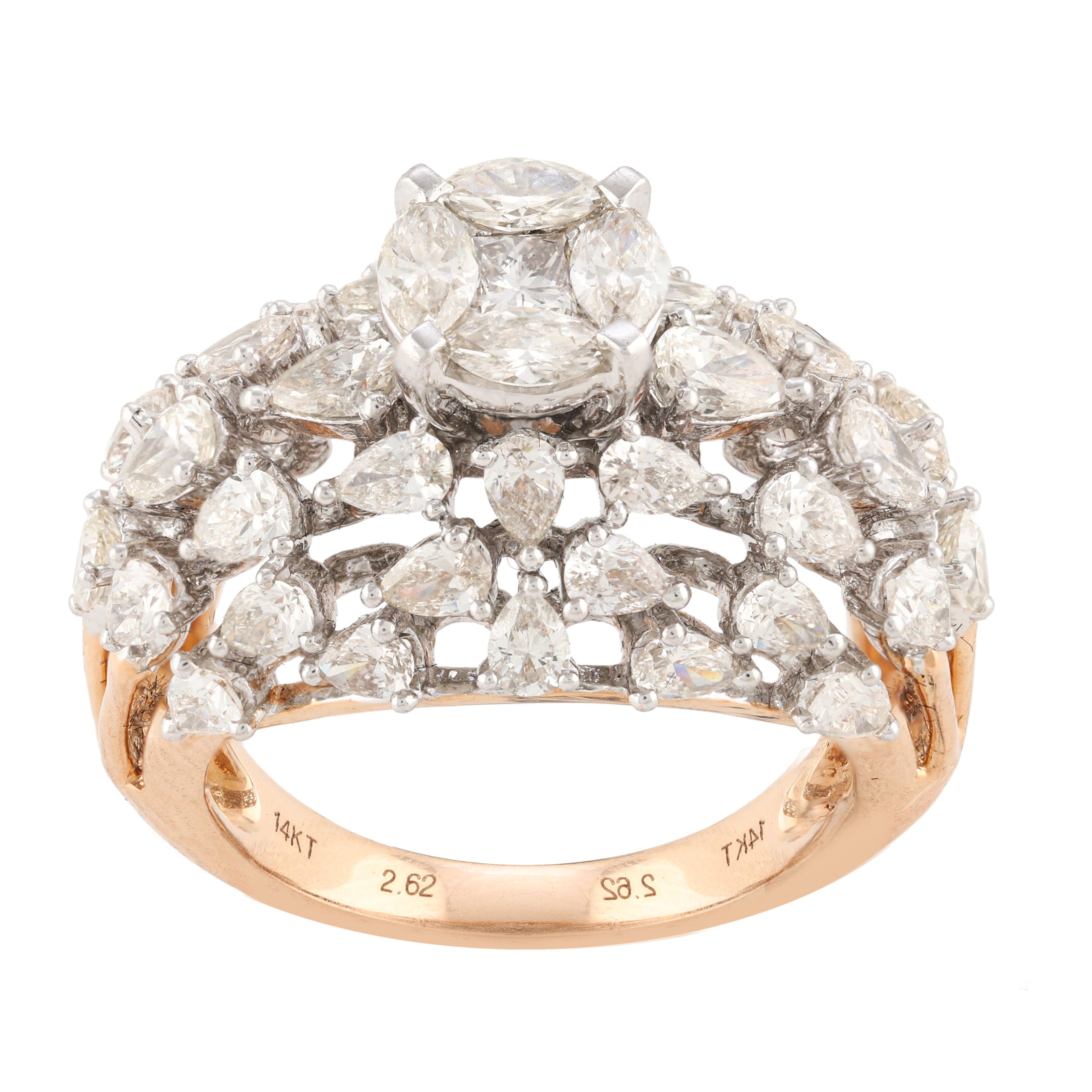 SKU NO – RP-16909 CATEGORY – RING SUB CATEGORY – RING GENDER – Female COLLECTION – DESIRE GOLD KT – G14KT GOLD COLOR – P PRODUCT SIZE – GROSS WEIGHT – 6.641 GOLD WEIGHT – 6.199 DIAMOND WEIGHT – 2.210 QUANTITY – 1