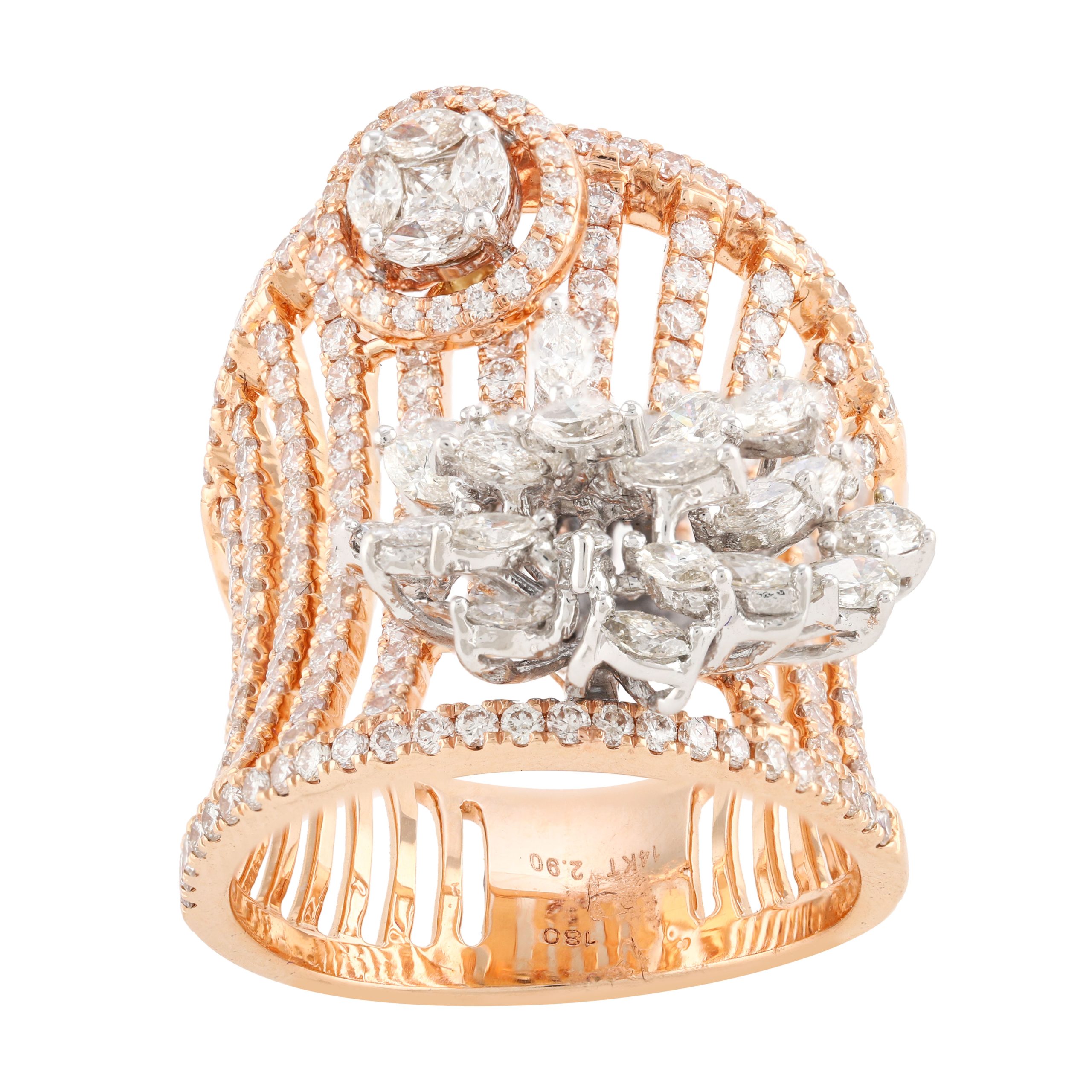 SKU NO – RP-17340 CATEGORY – RING SUB CATEGORY – RING GENDER – Female COLLECTION – DESIRE GOLD KT – G14KT GOLD COLOR – P PRODUCT SIZE – GROSS WEIGHT – 9.294 GOLD WEIGHT – 8.714 DIAMOND WEIGHT – 2.900 QUANTITY – 1