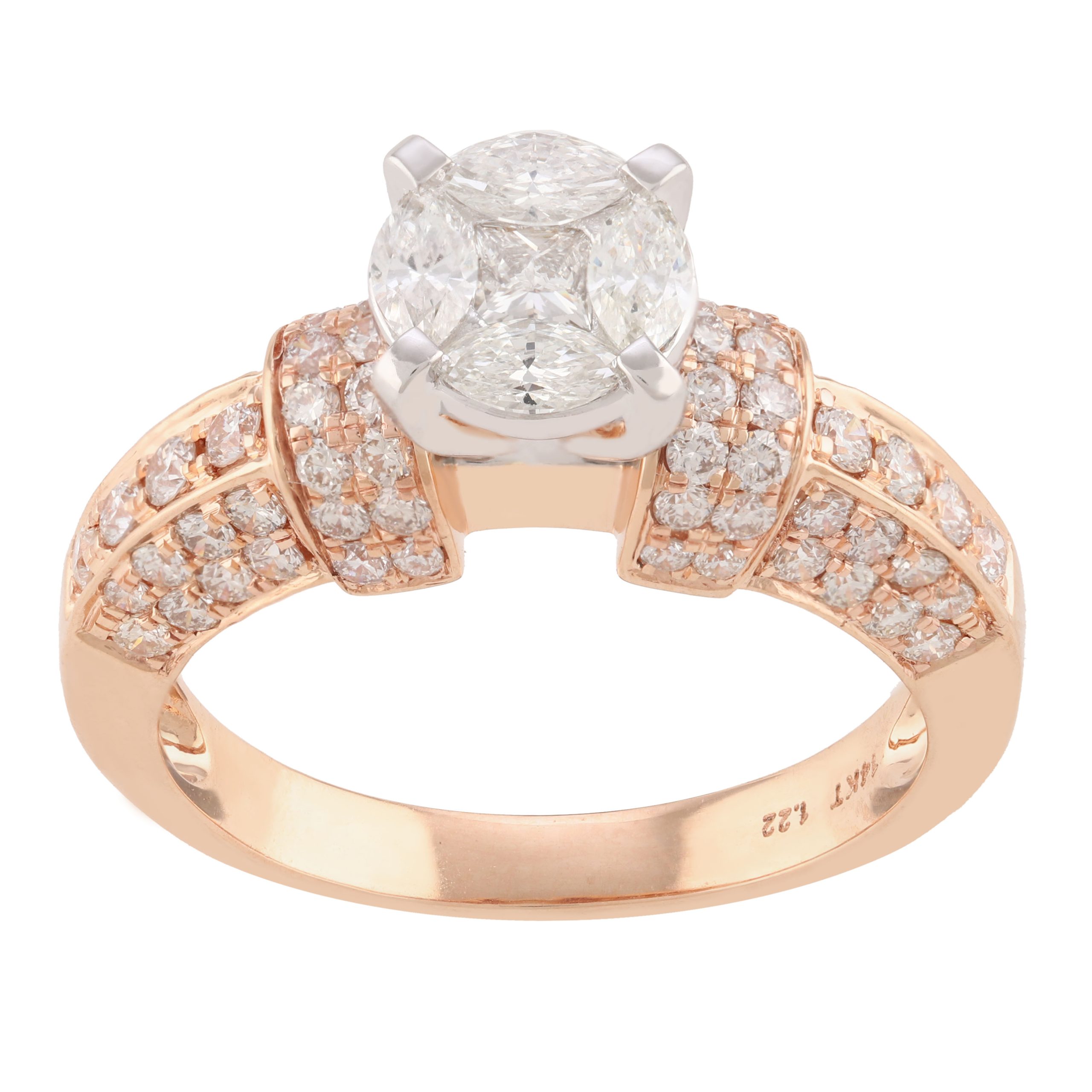 SKU NO – RP-19289 CATEGORY – RING SUB CATEGORY – RING GENDER – Female COLLECTION – DESIRE GOLD KT – G14KT GOLD COLOR – P PRODUCT SIZE – GROSS WEIGHT – 4.779 GOLD WEIGHT – 4.543 DIAMOND WEIGHT – 1.180 QUANTITY – 1