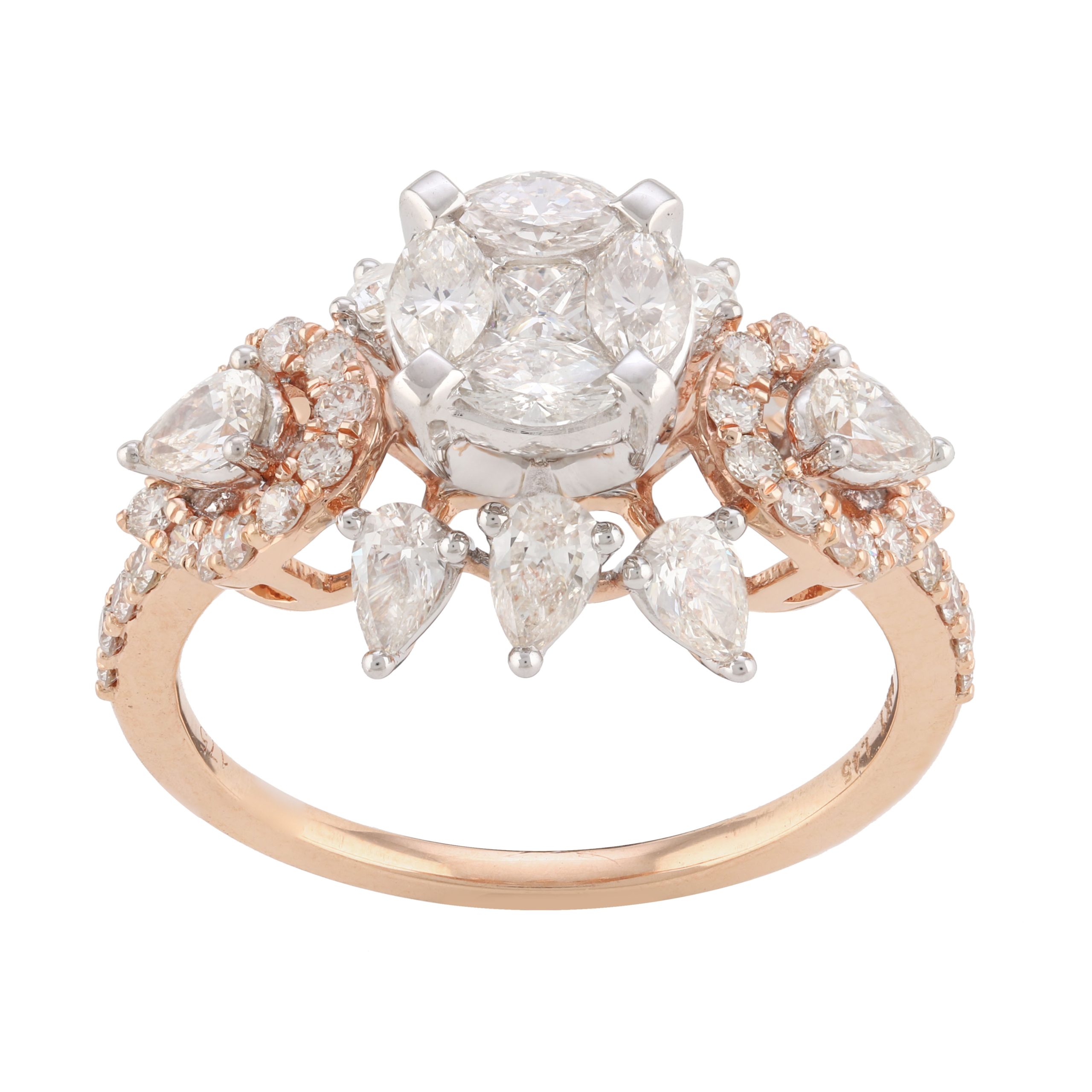 SKU NO – RP-21197 CATEGORY – RING SUB CATEGORY – RING GENDER – Female COLLECTION – DESIRE GOLD KT – G14KT GOLD COLOR – P PRODUCT SIZE – GROSS WEIGHT – 3.369 GOLD WEIGHT – 3.079 DIAMOND WEIGHT – 1.450 QUANTITY – 1