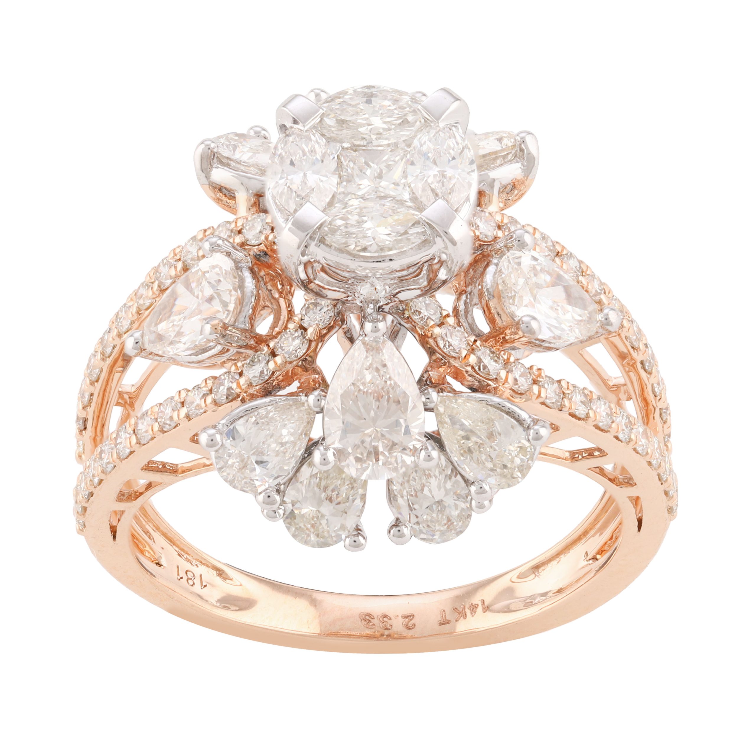 SKU NO – RP-21200H125 CATEGORY – RING SUB CATEGORY – RING GENDER – Female COLLECTION – DESIRE GOLD KT – G14KT GOLD COLOR – P PRODUCT SIZE – GROSS WEIGHT – 5.258 GOLD WEIGHT – 4.792 DIAMOND WEIGHT – 2.330 QUANTITY – 1