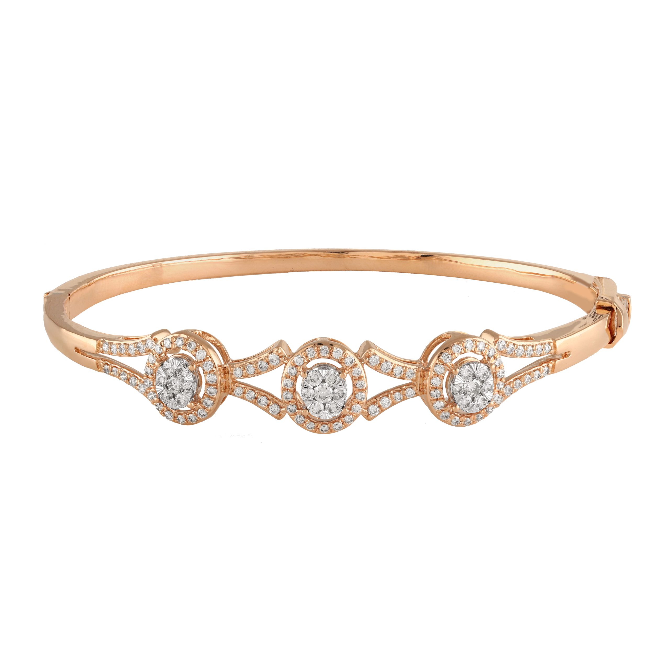 SKU NO – BL-01267VD CATEGORY – BANGLE SUB CATEGORY – BANGLE GENDER – Female COLLECTION – WYNN GOLD KT – G14KT GOLD COLOR – P PRODUCT SIZE – GROSS WEIGHT – 14.461 GOLD WEIGHT – 14.285 DIAMOND WEIGHT – 0.880 QUANTITY – 1